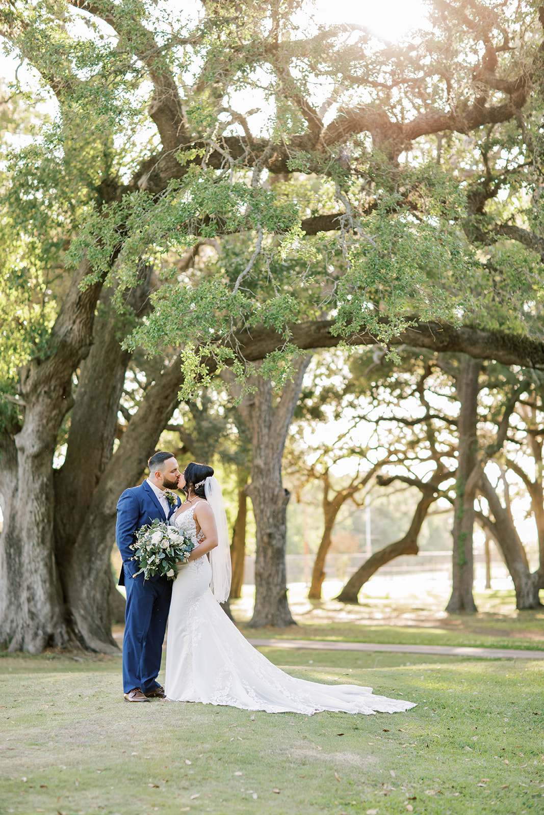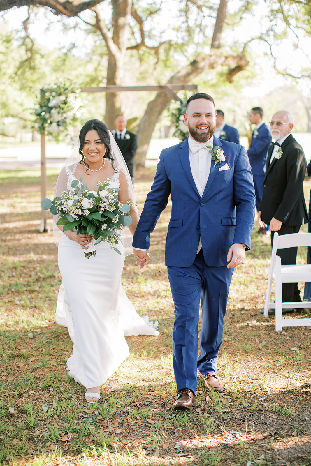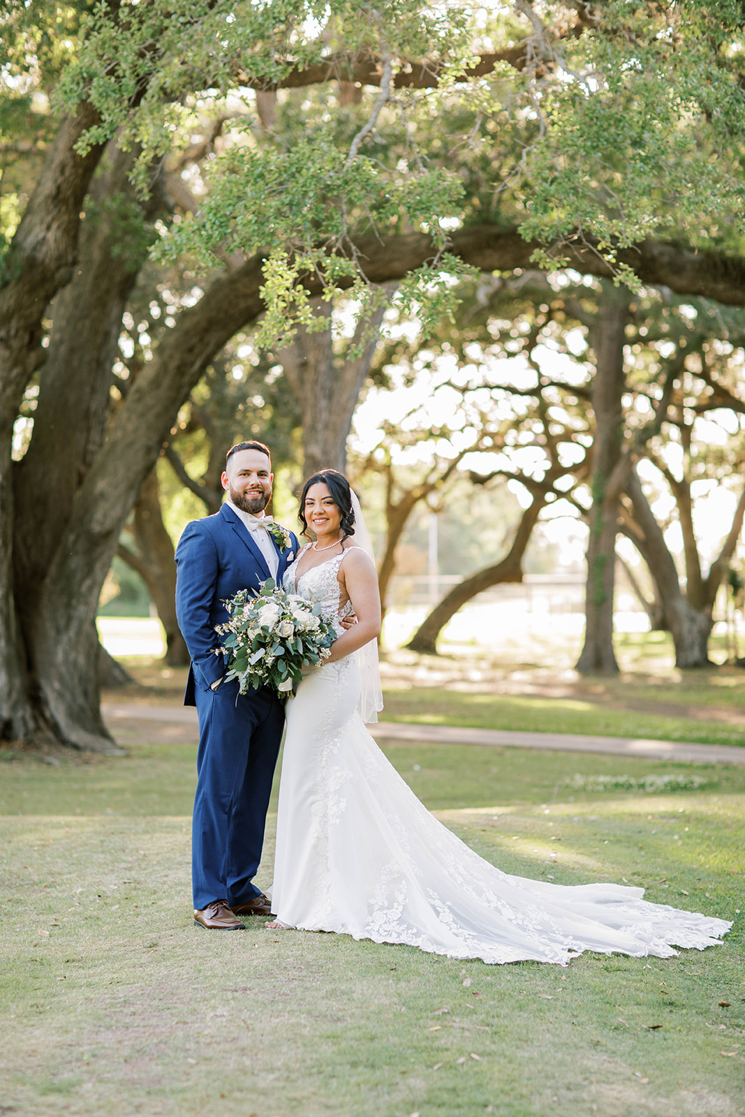 Ruth had a clear vision: she wanted their day to feel effortlessly beautiful, sentimental, and timeless. Greenery draped from the columns of the country club, softening the space and adding a delicate, romantic touch. Outside, the oak trees provided a breathtaking canopy for their vows. As they promised each other forever, the sunlight peeked through the branches, casting a golden glow over the ceremony.