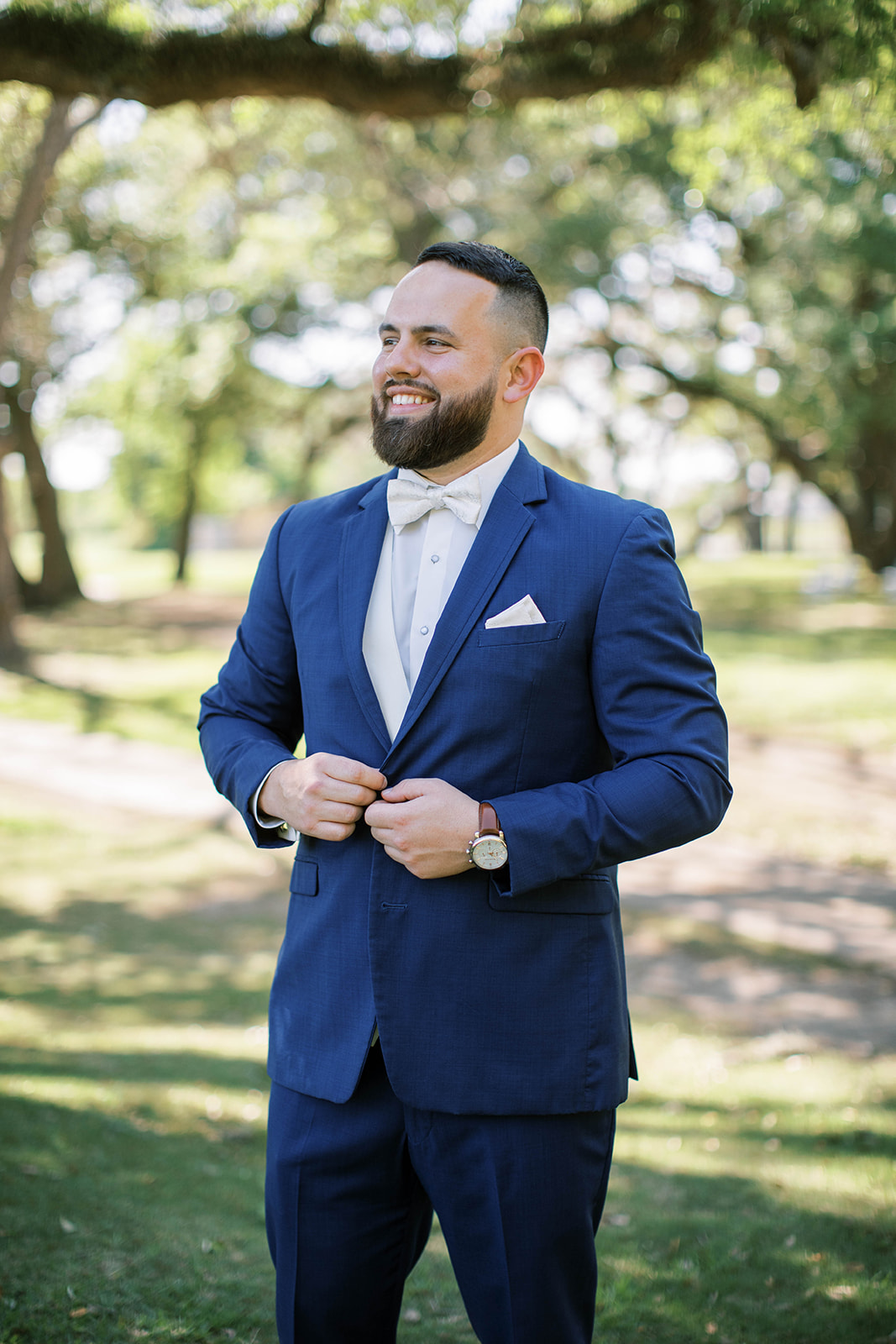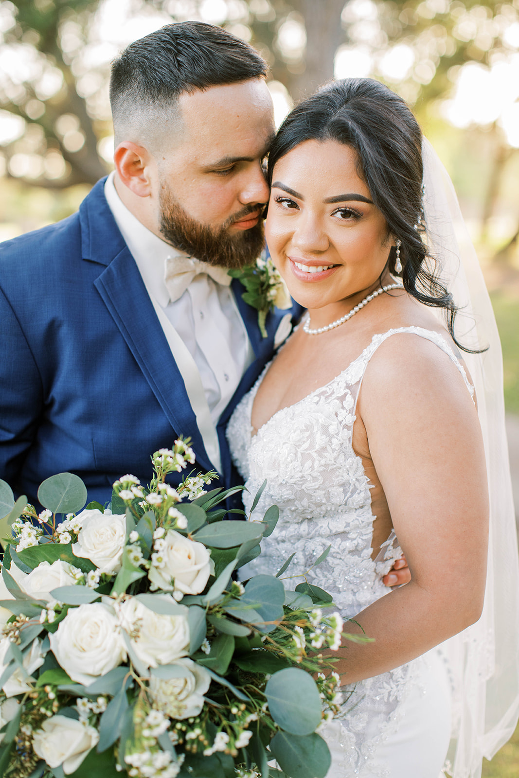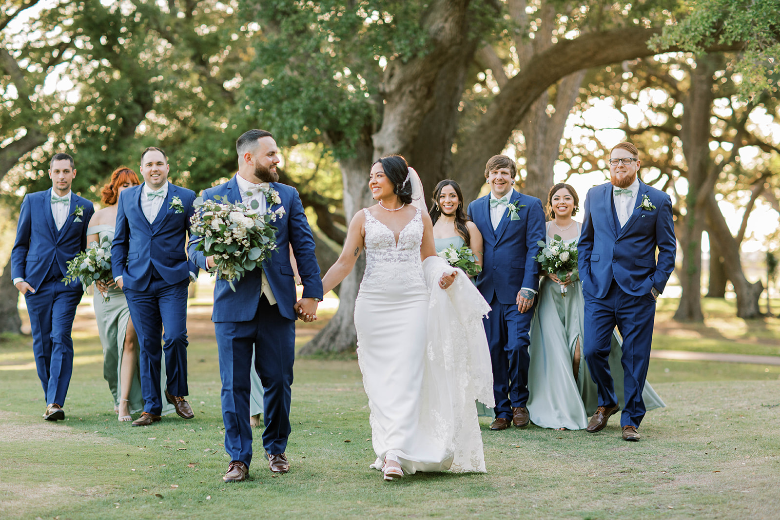 Ruth had a clear vision: she wanted their day to feel effortlessly beautiful, sentimental, and timeless. Greenery draped from the columns of the country club, softening the space and adding a delicate, romantic touch. Outside, the oak trees provided a breathtaking canopy for their vows. As they promised each other forever, the sunlight peeked through the branches, casting a golden glow over the ceremony.